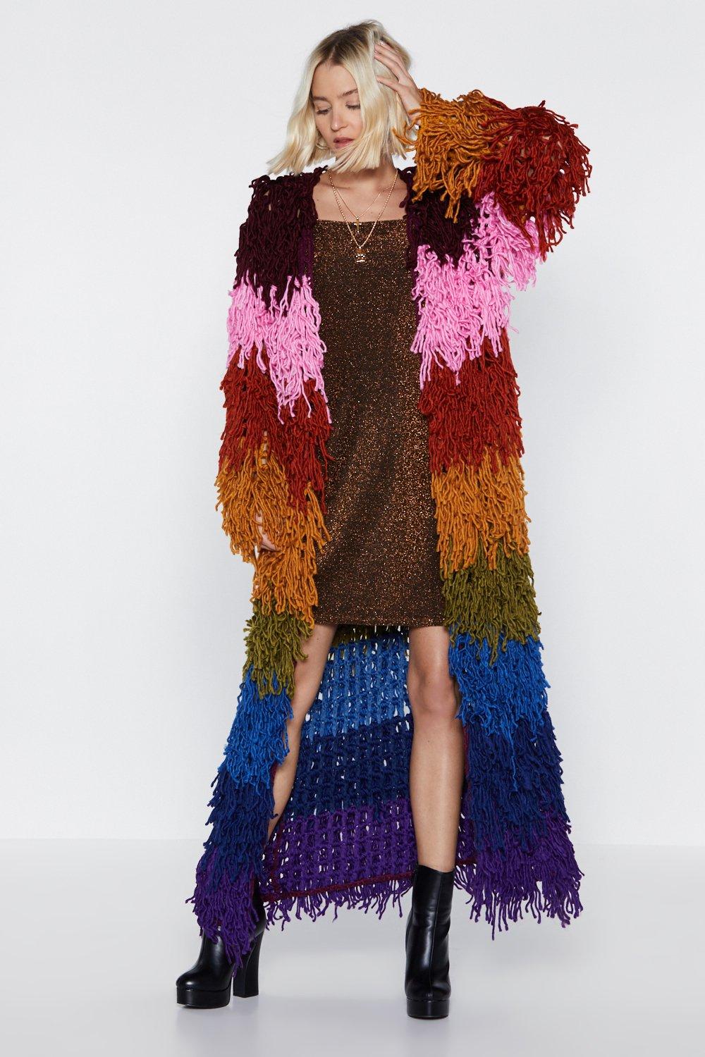 Rainbow Shaggy Cardigan Shop Festival Clothing Festival Outfits